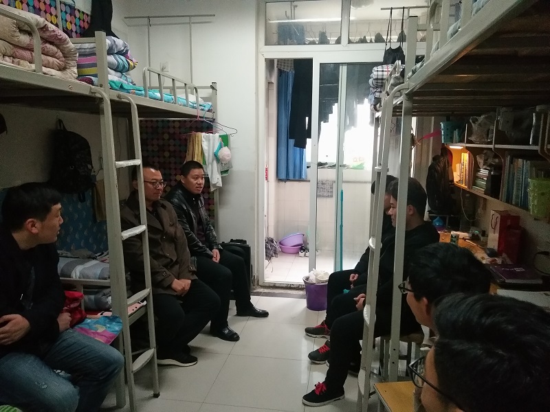 在走访过程中,老师们对寝室内物品摆放整齐,卫生干净整洁的宿舍给予了表扬肯定;对内务稍差的宿舍进行了教育指导。同时,老师们与学生进行了亲切沟通交流,了解了学期初学生学习生活状况,走访过程中,老师们鼓励同学们一要加强宿舍文化建设,共同创造良好的学习生活环境;二要努力学习,制定新学期学习和学业规划;三要加强实践锻炼,不断强化自身综合素质。