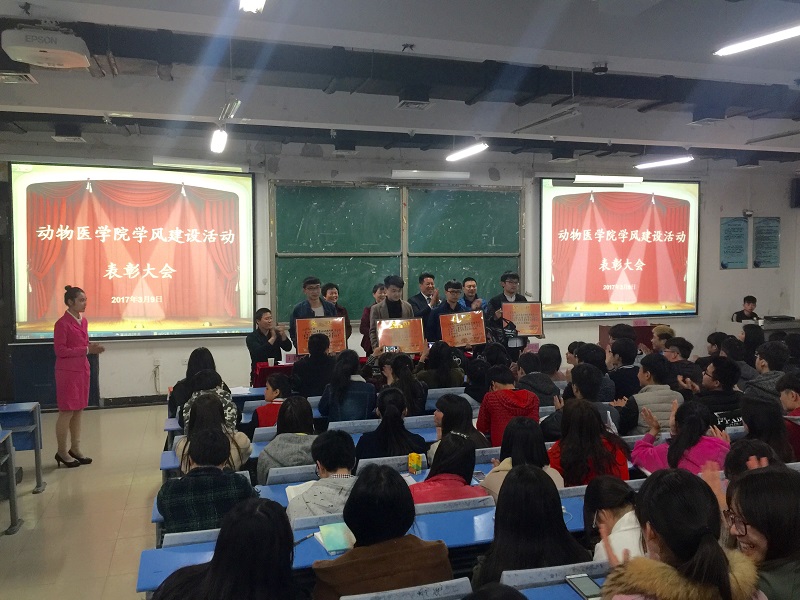 会上,副院长宋予震宣读了《关于表彰动物医学院2016年度学风建设活动先进集体和个人的决定》;与会领导为受到表彰的先进集体和个人颁发了证书和奖品;2015级动物医学1班王苗同学代表获奖学生作了精彩的发言,分享了自己的英语学习经验和大学学习方法;院党总支副书记张瑞春代表院学生工作领导小组作了总结讲话,张书记对受到表彰的先进集体和个人表示衷心祝贺,他希望受到表彰的先进集体和先进个人,珍惜荣誉,再接再厉,希望全体同学,以先进为榜样,奋起直追,拼搏上进,用自己的坚实行动赢得更多更好的成绩。