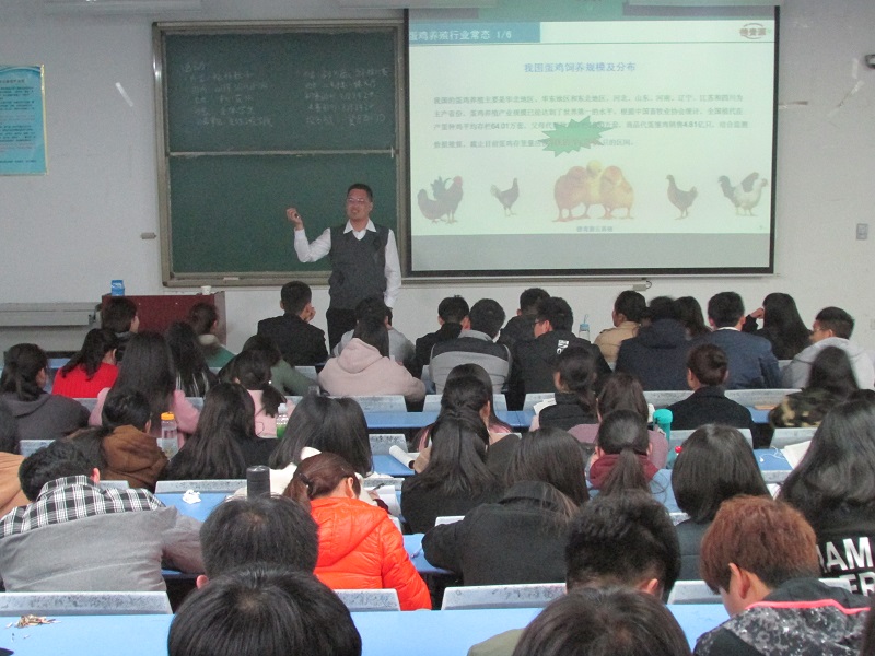杨总通过我国蛋鸡饲养养殖规模及分布,以及国内养殖与国外养殖的区别,向同学们介绍了我国蛋鸡行业的特点,并且介绍随着规模的模逐渐扩大由此延伸到养殖环境恶化而出现复杂疫病等多种情况。结合现在蛋鸡养殖发展现状以及市场需求状况,杨总告诉同学们万丈高楼平地起,功夫全在打地基,产业的扩大随之会对人才需求也会增加,并且告诫同学们一定要加强专业知识学习,拓宽知识理论体系,丰富知识内涵,努力成为专业领域有作为的人。