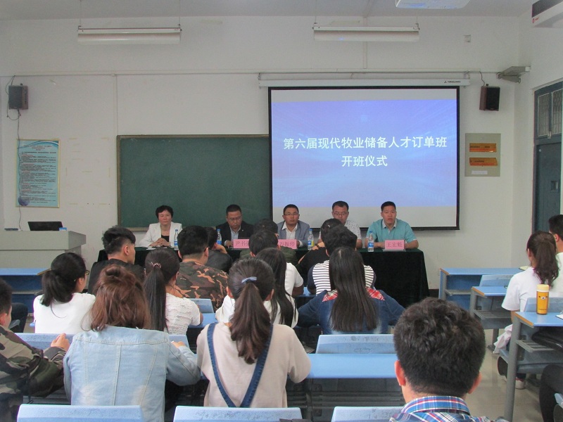 动物医学院与现代牧业集团开展第六次合作。2017年5月4日下午14:00在生工组团A413教室成功举办了开班典礼。 出席本次开班典礼的有动物医学院副院长石冬梅,动物医学院党总支副书记张瑞春,现代牧业集团人力资源中心主任尹书强,商河牧场副厂长万振停,以及2015级现代牧业班的39名学员,开班典礼由院团总支书记王宏魁主持。