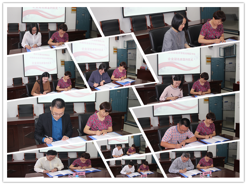 9月24日上午,我院校企合作2017级企业冠名班签约仪式在生工楼C401会议室举行。参加本次签约仪式的有:动物医学院党总支书记王春明、党总支副书记张瑞春、副院长宋予震及来自四川特驱投资集团有限公司(华西希望特驱集团)、江苏立华牧业股份有限公司、河南广安集团、郑州市康旭宠物医院、瑞鹏宠物医疗集团股份有限公司、新希望六和股份有限公司、河南省新大牧业股份有限公司、北京德青源农业科技股份有限公司、上海派德宠物机构、洛阳美贝宠物食品有限公司、内蒙古优然牧业有限责任公司等11家企业来宾。签约仪式由副院长石冬梅主持。