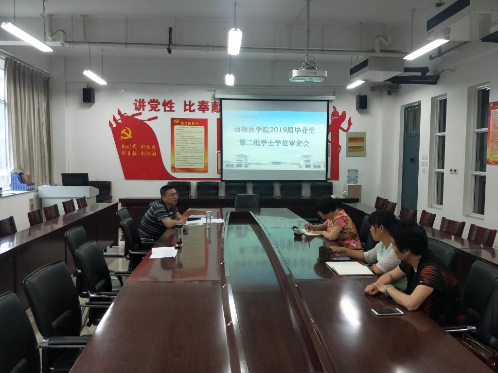 2019年6月27日上午十点,在生工组团C401召开了动物医学院2019届毕业生第二批学士学位审定会,学科学位评定委员会成员参加了会议。首先宋予震副院长宣读了第二批学士学位授予名单,各委员针对人员名单进行逐个审查,最后确定第二批可以授予学士学位的学生共计四名。具体情况见附件。