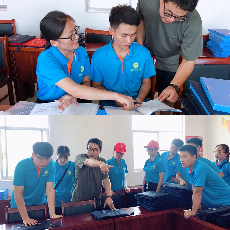 同学们早早到达董王庄乡前村村委会后,前村第一驻村书记谷志飞对社会实践小分队队员的到来表示热烈的欢迎。通过与谷书记的交谈,同学们了解到了前村的1570余户贫困家庭如今的收入状况,基本上都能享受到国家的扶贫政策的帮扶。低保五保户每年可享受近八千元的补助金,养殖户村民可得到五千元补助,光伏扶贫为贫困户带来三千元的扶贫金,村民用电方面是依靠国网,贫困户还可享受到分红,谷书记鼓励村民们利用地理优势种植艾草,每亩地可得到一千元补贴等,这些扶贫方式使村民们的生活质量得到很大的改善。随后,谷书记通过扶贫明白卡向同学们清晰地讲述了档案的组成以及如何将档案分类存放的方法,提醒同学们在做工作的时候要认真扎实而非追求速度。通过学习和材料的整理同学们深刻了解到每一个扶贫故事背后都离不开每一位一线工作者的辛苦付出。