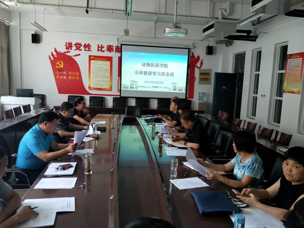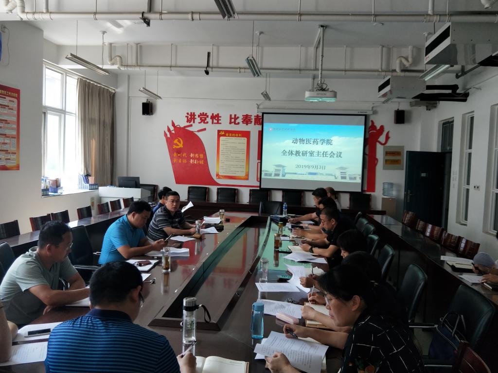 2019年9月3日下午14:30,太阳成集团tyc33455在生工组团C401召开了新学期全体教研室主任会议,学院书记刘永录、院长宋予震、副院长李利红、教学秘书田春霞、吴玉臣以及全体教研室主任参加了会议。