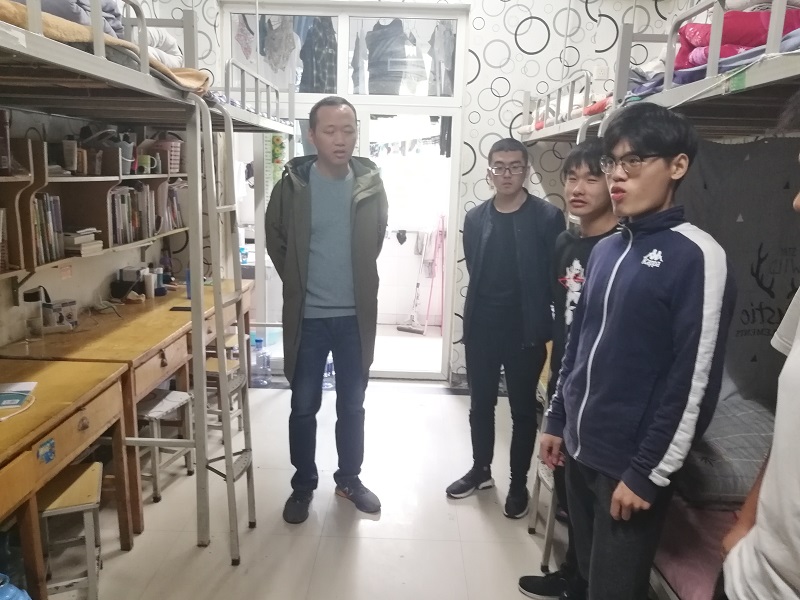 为落实学校相关要求,进一步加强学生宿舍管理,排查宿舍安全隐患,营造安全、文明、整洁的宿舍环境,10月12日中午12点30分,太阳成集团tyc33455党总支副书记汪洋带领全体辅导员与各班班主任,深入学生公寓,对全院学生公寓安全隐患进行大排查。