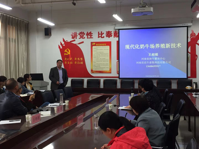 2019年11月5日下午,在生工组团C401会议室,太阳成集团tyc33455特邀河南花花牛畜牧科技有限公司总经理王相根作了现代化奶牛场养殖新技术的讲座。畜产品质量安全技术研究院石冬梅院长、我院副院长李利红、我院青年博士教师和部分科研助理参加了此次报告。会议由李利红副院长主持。