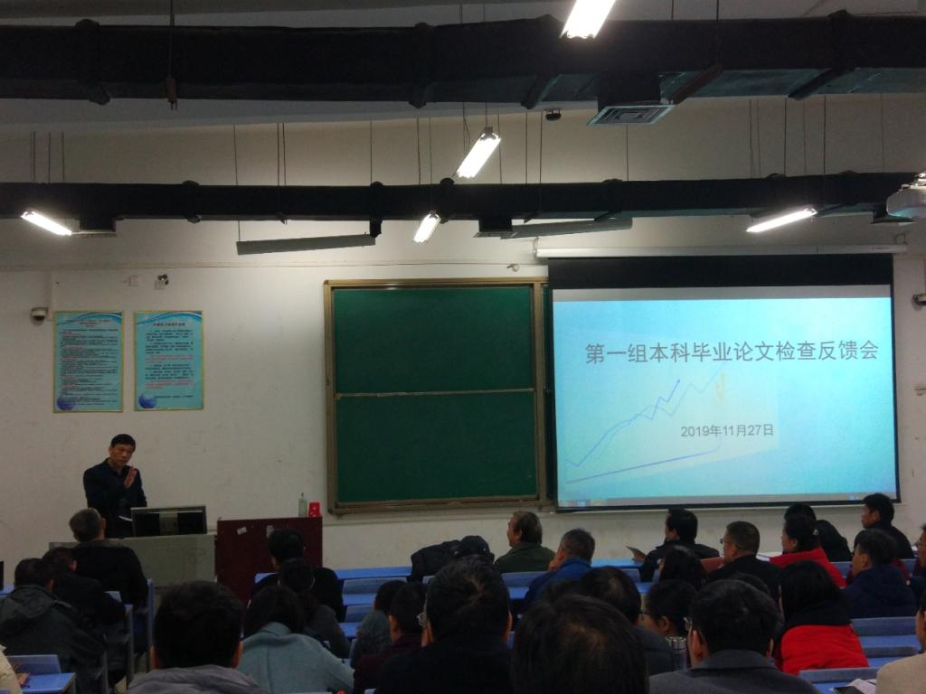 以河南农业大学牧医工程学院副院长李明教授为组长的九位专家,首先听取了副院长李利红对我院本科毕业论文自查工作情况的汇报。随后各检查组成员对照本科毕业论文相关文件填写要求,进行逐项详细检查。检查结束后于下午召开了现场反馈会,各专家对我院本科生毕业论文的整体工作表示了肯定,但也在论文选题、开题报告、论文撰写和论文评阅等环节中存在部分问题,并提出了整改建议。
