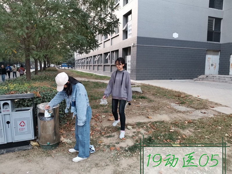 2019年11月20日,19动医05班的青年志愿者们对每天学习和生活的龙子湖校园进行了一次垃圾的分类与清理,为广大师生提供了一个整洁舒适的学习环境,同时也达到了向全校师生传达爱护环境和垃圾分类的目的。立足身边小事,美化校园环境;弘扬志愿精神,为校园清洁卫生贡献一份属于自己的力量。