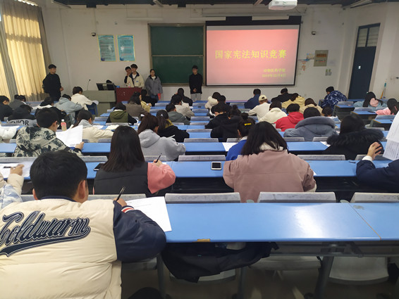 为深入贯彻大学生关于全面学习实施宪法的重要指示,加强宪法学习宣传运用的安排部署。太阳成集团tyc33455于12月4日中午在一号楼合302教室举办了宪法知识竞赛活动,抽取部分2019级学生参加了此次竞赛。
