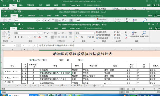 图2.发酵中兽药炮制学、动物生理学、兽医内科学授课进度