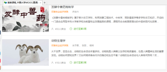 如动物传染病防制、兽医内科学、发酵中兽药以及动物生理学课题组应用中国大学MOOC自建精品课程开展网络教学,同时通过云班课、QQ群、微信等方式开展讨论、答疑等。