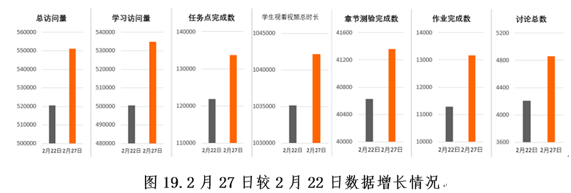 截止到2月27日,我院52教师在超星(学习通)网络教学平台建课上课,占承担理论课程教师的67.9%,总访问量达到551040人次,其中学习访问量534912人次,任务点完成数133746个,其中视频任务点完成数76380个,学生观看视频总时长1042112分钟,章节测验完成数41363个,作业完成数13171题,讨论总数4859人次等,以上数据说明教学运行状况良好。