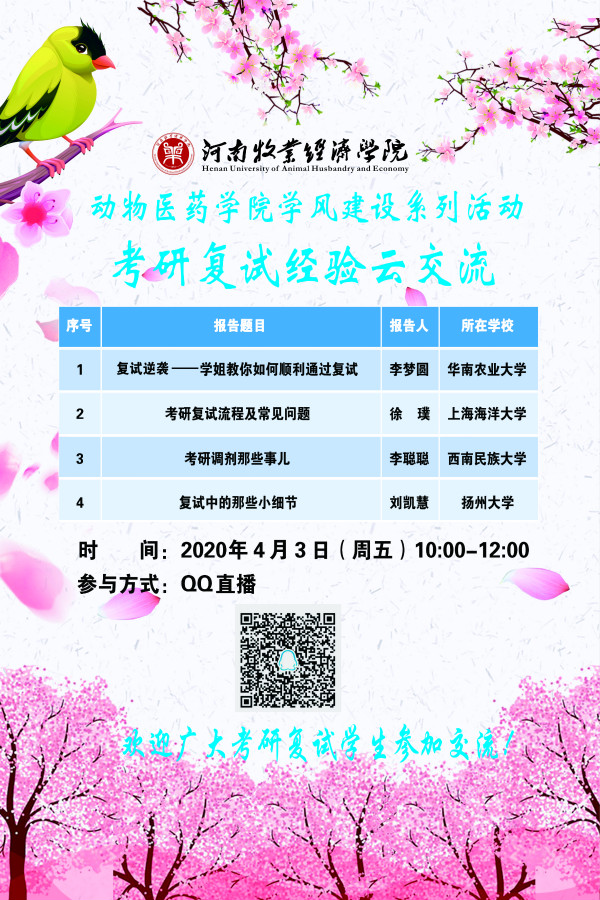 太阳成集团tyc33455学风建设系列活动之考研复试经验云交流海报
