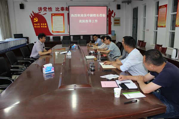 吴校长首先听取了宋院长的工作汇报,汇报后吴校长对于我院的工作给予充分肯定,并指出学院要高层次设计、高标准建设、高质量示范;并强调学院今后要重点处理好“四个关系”:一是处理好“远与近”的关系,学院专业建设与发展要立足省内,更要着眼国际舞台;二是处理好“多与少”的关系,学院师资数量庞大,更要努力培养名师;三是处理好“独立办学与合作办学”的关系,学院独立办学强,更要向合作办学方向努力;四是处理好“高与低”的关系,学院不仅要发挥育人的基本职能,更要“技术领先、学术领先、文化领先”。对于今后的工作吴校长指出要重点关注“两个思考”:一是要思考如何创造条件让老师做一名真正的好老师?二是要思考如何提升教学管理的内涵建设?