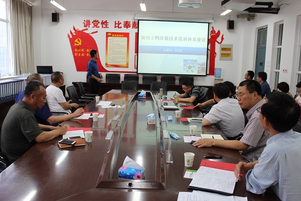 接下来,三个子项目课题组代表站在推动双方共同发展的高度,以负责人的态度、专业化的视角,分别从黄河土鸭种鸭和商品土鸭疫病防控体系建设、黄河土鸭质量标准及安全控制体系建设、黄河土鸭养殖技术培训体系建设等三个方面进行汇报。