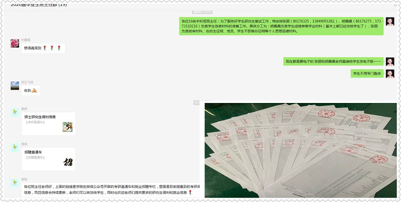 最近是各院校开始集中复试的时间,我院第一时间整理研究生线上复试注意事项,提醒同学们注意提前调适好复试的设备,选择独立、安静、采光好的房间,以及提前准备好复试的资料等,确保复试环节顺畅。同时为了充分服务好学生研究生复试工作,我院特安排张丽、胡佩佩两位老师专门负责学生复试所需各类材料的准备工作,面面俱到,让学生们没有后顾之忧,全力备战复试,提升考研的录取率。