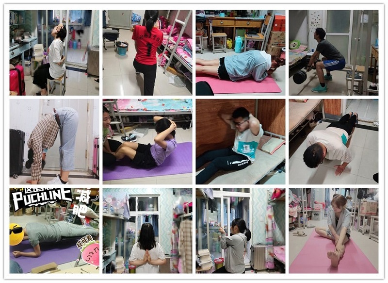 此次活动于2020年5月23日开始,176位毕业生积极参与,充分利用宿舍内的设施和物品,进行各式各样的体育锻炼。瑜伽、举重、仰卧起坐、俯卧撑、平板支撑等等,同学们相互监督、互相鼓励,强身健体、舒缓身心的同时,还增强了宿舍成员间的友情,受到学生们的一致好评。