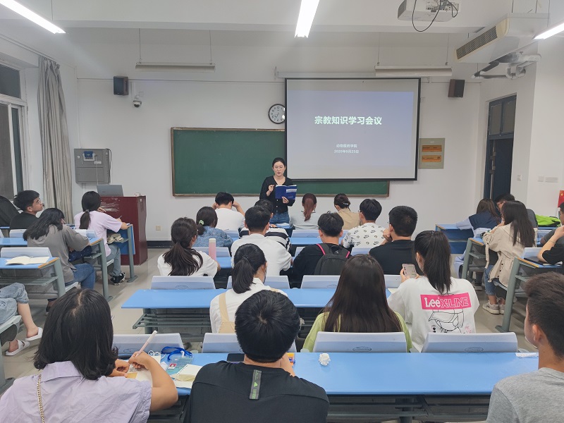 班会之前,我院召开团学干部学生工作会议安排宗教知识学习事宜。学院团委副书记聂丹对进行相关宗教政策法规的宣读,结合实际向学生干部们介绍什么是非法宗教及其特征,讲述非法宗教对社会所造成危害的严重性。她要求所有学生干部将民族宗教政策法律法规知识牢记于心,向其他同学做好宣传,大家要提高明辨是非的能力,为营造健康文明的校园环境奠定基础。