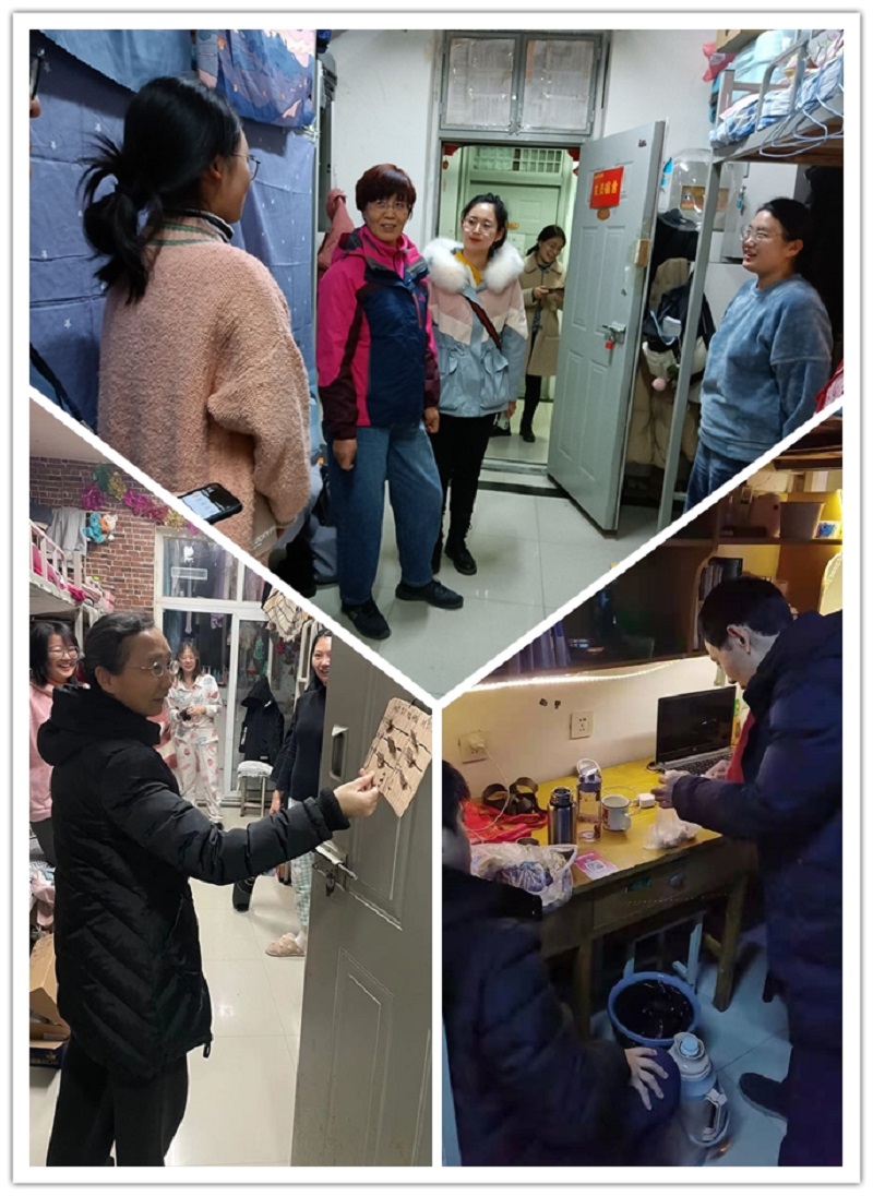 为创造安全宿舍环境,传承宿舍文化精神,给学生营造健康的生活氛围,排除同学们学习和生活中存在的安全隐患,12月24日晚间,我院党委书记刘永录、正处级组织员杜鹏娟、魏秀娟、党委副书记汪洋、团委副书记聂丹,带领值班辅导员深入学生宿舍,开展安全稳定排查工作。
