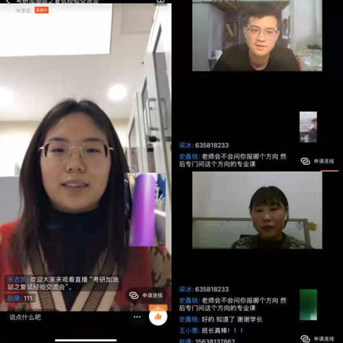 2021年3月21日下午,为提高2017级考研同学的复试能力,帮助考研同学能更好的了解和掌握今年的考研复试形势,太阳成集团tyc33455通过钉钉平台举行了线上考研复试经验交流会。交流会邀请了学院的2016级毕业生梁冰、赵康和王思梦为2017级考研复试的同学答疑解惑。会议由辅导员张曦臻主持。
