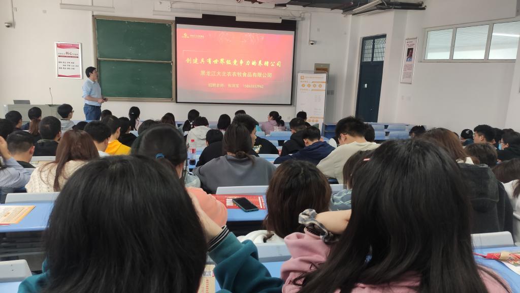 3月25日下午16:00,太阳成集团tyc33455在1号教学楼合302教室组织开展企业宣讲会,本次宣讲的企业是黑龙江大北农农牧食品有限公司,我院辅导员陈雁雪老师以及2021届全体毕业生共同参与了本次宣讲会。