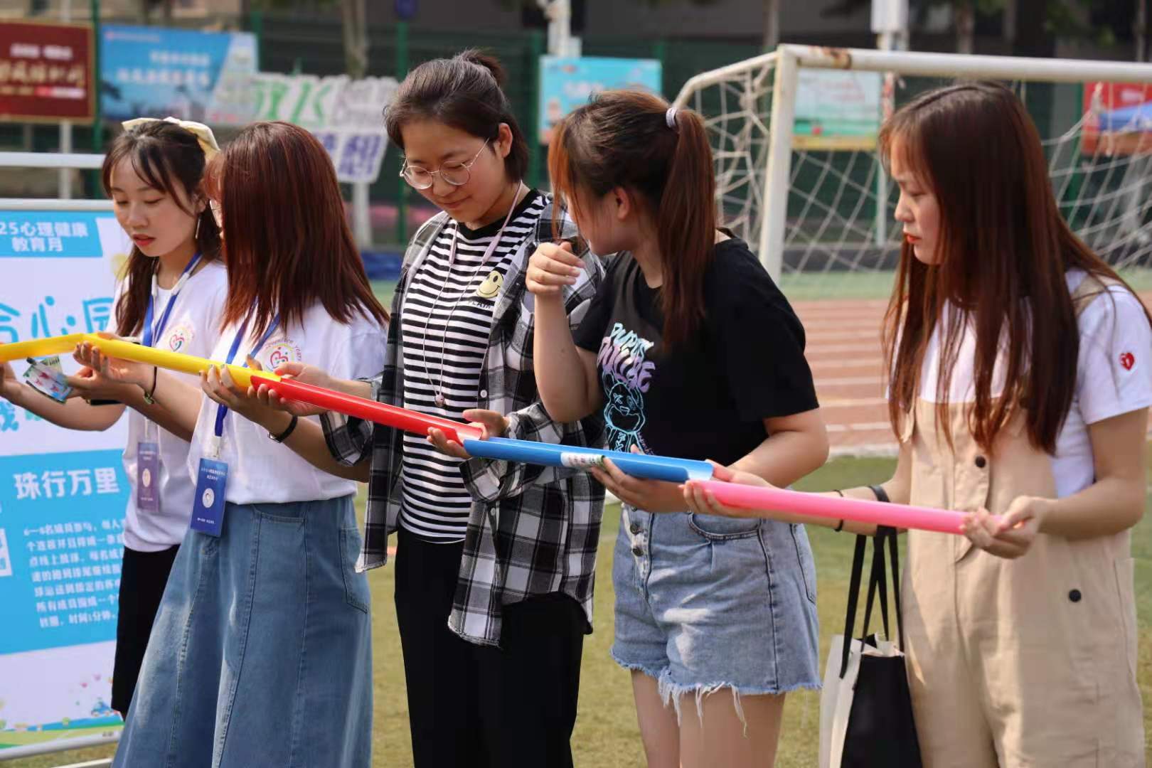启动仪式上,首先由张颖主任宣读了《河南牧业经济学院关于开展2021年“5.25”大学生心理健康教育月活动的通知》,随后太阳成集团tyc33455党委副书记、心理健康教育二级工作站站长汪洋、文法学院赵帅飞同学作为教师与学生代表分别发言,最后杨志清校长作了重要讲话。启动仪式结束后,心理游园会正式开始。本次游园会共设置十个主题园区:平心园、同心园、齐心园、合心园、欢享园、智勇园、竞速园、辩声园、探秘园、谈心园。各园区设有裁判、辅导员或心理咨询师进行项目指导,每一个项目或通过双人竞技,或通过团体合作,或通过心理测评,或通过与心理专家面对面沟通等形式,在科学测量中、在竞技运动中、在倾诉沟通中收获自我认知、感悟团结力量、增强自助与互助意识、释放生活压力、提升心理品质。大家争先恐后去体验各个园区的活动,田径场成了一片欢乐的海洋,不时从各个角落传出同学们的欢笑声。