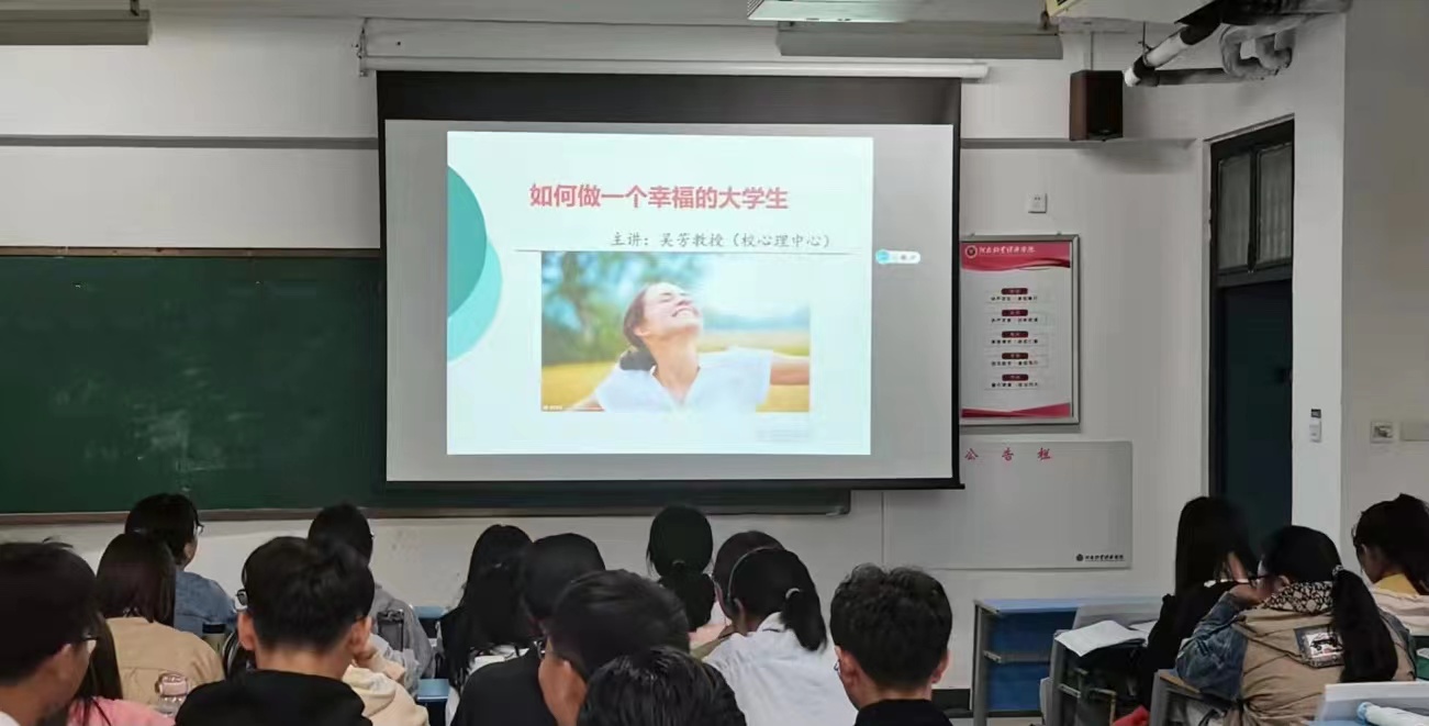 2021年10月13日,太阳成集团tyc33455特邀大学生心理健康教育中心吴芳教授为2021级全体同学进行了《如何做一个幸福的大学生》新生心理适应性讲座,帮助新入学的同学们正确认识自己,及时调整心态,做一个幸福的大学生。由于疫情防控的原因,本次讲座采取线上进行,各新生班级统一观看。