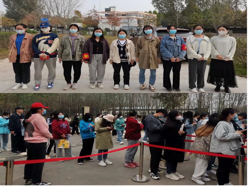 结合全市疫情防控工作形势,11月8日,龙子湖校区进行全员检测。为保证我院学生核酸检测各项工作有序开展,我院志愿者于早上七点到达图书馆北门,提前布置好检测场地,检测现场规范设置进口、出口、等候区、信息登记区、采样区、医废处置区等,为检测工作做好准备。针对天气寒冷因素,积极引导学生分批错时进行检测,部分志愿者作为信息采集员引导学生有序进行信息登记和核酸采集,全力配合医务人员的工作。部分志愿者在室外承担现场指引、维护秩序等工作,指引学生按顺序间隔一米排队,佩戴口罩,依次进行采样。冻得手脚冰凉,就跺跺脚、搓搓手,然后继续工作。采样结束后,志愿者们对医疗废弃物进行处置和样本交接。经过近7个小时的工作,顺利完成2650人的核酸检测。志愿者们冲在核酸检测的最前线,齐心协力,用实际行动为全员核酸检测的顺利进行贡献着自己的力量。