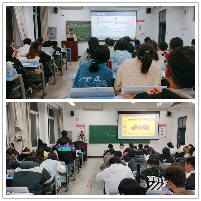 为宣传国家征兵政策,进一步增强学生参军入伍的热情,强化学生保家卫国的责任感和使命感,11月30日至12月2日,学院邀请孙逸冰、武佳露、郭恒民、谢庆、杨宇、陈家霖6位退役复学大学生,深入21级各班开展征兵政策宣讲活动。