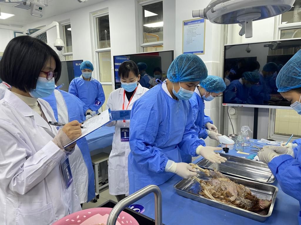 在前期的解剖彩绘比赛和理论知识竞赛结束后,12月4日下午两点,迎来了本次大赛最精彩的实操环节,鸡病理剖检、病原菌检查、TLC定性鉴别和硫酸镁导泻机制4个实操项目在生工楼C座正式拉开帷幕。决赛现场,参赛选手将课堂知识与动手实践紧密结合,灵活运用手术器械,通力配合,相互协作,展现出扎实的专业功底与精湛的操作技术。比赛期间,裁判老师们细致严谨,分别根据选手动作规范度、操作正确性、配合默契度等多个方面进行综合评判并打分。最终,每个实操项目分别评选一等奖1组,二等奖3组,三等奖4组。