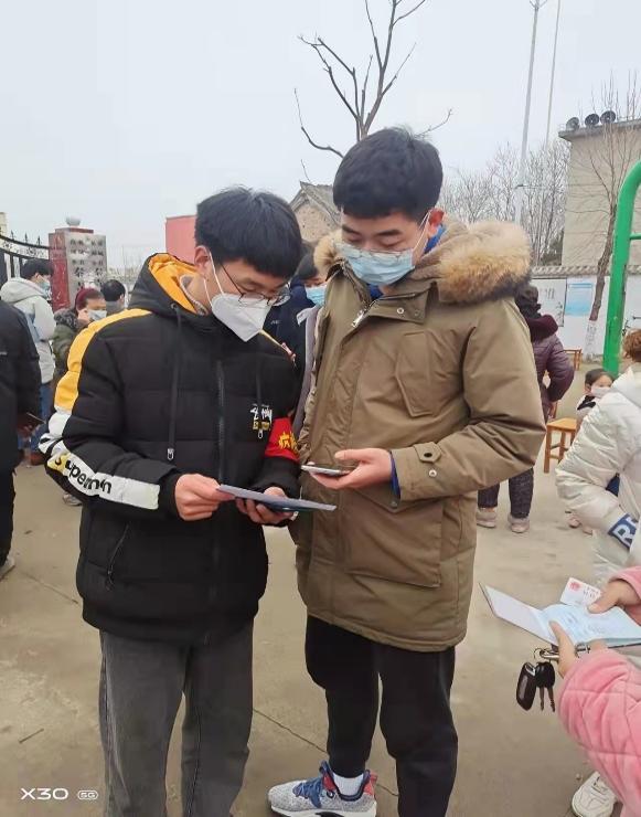 19兽医02班申双杰,由于经历过一次混乱的做核酸经历,于是决定志愿参加村里的核酸检测服务活动。他所在的村庄位于新密市超化镇申沟村,主要工作是维持秩序、登记信息、扫描采样码等。虽然这次核酸检测每天一次,但这并未影响村民们的积极性,每天做核酸已经成为习惯,一天不做反而觉得缺点啥,他们村每天都能在四小时内完成两千多人的核酸检测。这期间,申双杰同学冷了就再套上件厚衣服,饿了就吃桶泡面,每天要在采样点执勤五六个小时。从1月4日起,申双杰已经连续坚守了8天,除了核酸采样服务工作,在没有值班安排时,就会协助村里工作人员为村民讲解疫情防控相关知识,劝导村民不串门、不集聚,用自己的行动在抗击疫情一线发光发热。