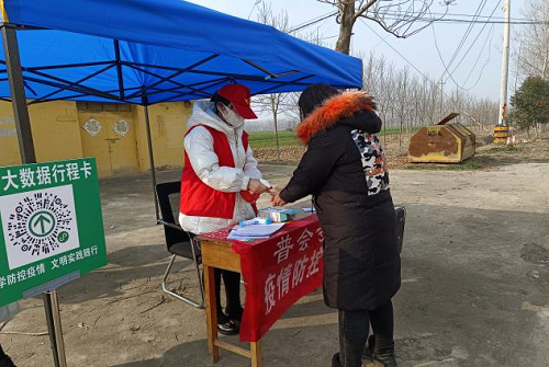 我是来自驻马店市确山县普会寺镇宋楼村的池春滢。1月12日,我申请加入村社疫情防控工作中,主要工作是在村口卡点对来往的人员进行“两码”查验,体温测量,外来人员的信息登记以及消杀等工作。虽然卡点管控是件简单的工作,但它又是十分重要的工作,因为一例外来人员的漏查,便会危及到广大群众生命安全。1月21日,我的工作圆满完成,在这期间,我结识了很多其他和我年龄相仿的志愿者,我们互相帮助,互相鼓励,在这天寒地冻的日子里,能为家乡的防疫工作做出积极贡献,我们都感到十分荣幸。