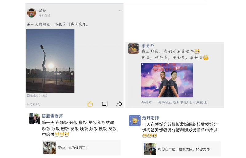 四楼的同学们,收拾收拾,十分钟后下楼做核酸,辅导员们刚送完饭,简单凑合两口,楼道里就传来辅导员们的催喊声,他们就又忙碌地组织同学们下楼做核酸了。疫情无情,人间有爱,在皇家牧院,你每天不仅可以体会到开“盲盒”的乐趣,还可以体会到加餐的快乐。岁月静好 吗?——不,是有人在替我们默默负重前行。