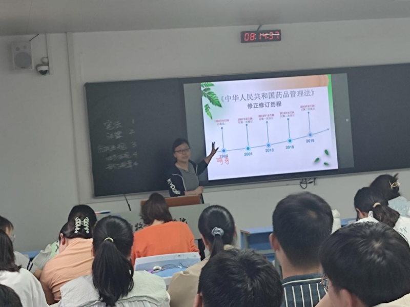 4月25日上午第一节,卢婷婷老师在二号楼A312开展了研讨型的教学观摩课——《药品管理法规》。本次授课主要内容是《药品管理法》介绍及其修订背景。授课过程中,卢老师引入各种时事案例,旁征博引,充分介绍了药品管理法的作用地位、修订背景、修订过程及新法的亮点,让学生主动参与并发言,并适时点评,起到了非常好的教学效果。