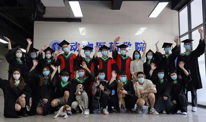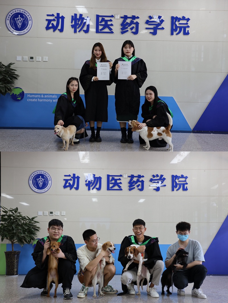人类科学研究的进步离不开实验动物,它们为人类的健康事业做出了贡献和牺牲,对生物医药领域的发展有着不可替代的推动作用。而对我院每一个医药类毕业生在专业上的成长,也同样离不开实验动物的献身。一直以来,学院注重培养同学们的实践动手能力,按照培养方案开设了全方位的实验课程,而这些动物则是学生们实验课上的“同班同学”,一些动物甚至比学生入学的年份还要早,同学们都开玩笑称它们是“羊学姐、牛学长、兔同学、猫学妹”,四年的实验课使学生与这些实验动物建立了深厚的感情。2018级动医专业学生孙浩宇说“这只小狗不仅是我们实验课上的小伙伴,更是我的毕业论文,非常感谢这些实验动物的陪伴,它们是为科学为教育献身的无名英雄,是我们专业学习道路上的‘无言导师’,所以在毕业时看到它们倍感亲切,也想拍个照片纪念下。”