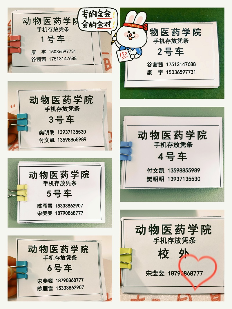 本次专升本考试,我院共有338名考生参加。送考前,学院专门组织召开2022年专升本相关工作部署会,院领导对送考工作的每个准备环节进行了认真细致的安排,辅导员老师们也在同学们备考的间歇时间,走进宿舍,详细询问了考生们的备考情况及身体状态,建议考生们保证睡眠时间,保持良好的心态,为即将奔赴“战场”的同学们注入了一针“强心剂”。送考时,学院精心策划,在每辆车上都为同学们准备了爱意满满的士力架,寓意 “把金榜题名的甜提前送给你”,体现了我院对青年学子的人文关怀。另外,根据今年最新政策要求,考生不能把手机带入考场,我院考虑了可能存在的各种突发情况,老师们集思广益,采取措施,一是临时加急制作了手写爱心姓名贴,避免同学们手机混淆,二是为学生发放带有老师联系方式的手机存放凭条,确保学生有突发情况时第一时间联系辅导员老师。