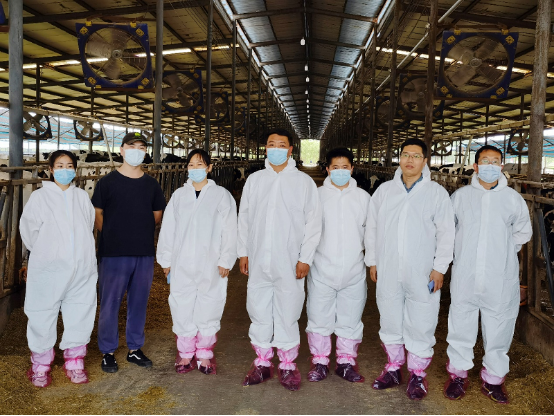 活动现场,双方在公司接待处召开了座谈会,汤阴县科创中心主任李飞、畜牧兽医总站副站长魏志光亲临现场监督指导工作。首先天润牧业董事长郭银贵向大家介绍了目前场区奶牛状态、防疫程序、环境控制等情况;学院基础兽医教研室主任王军向各位介绍了我校开展特派员服务及“双百”工程的目的、意义与措施;县科创中心李飞主任表示,利用省科技特派员与企业的合作通道,通过科技服务团队和企业双方密切对接,充分发挥各自优势,为企业解决难题,可以实现双方共赢,并对我校“双百”工程的开展表示赞许,对专家们不畏酷暑、发挥专长、服务到家的情怀与行动给予高度赞扬;其次省科技特派员罗琴表示,科技服务团成员会结合疫情防控形式和畜牧生产实际,将持续开展好线上线下结合的指导服务模式,不断提高服务能力,真正为企业做好事、做实事,助力企业发展;最后,在郭董事长的带领下,一行走访了泌乳牛舍、犊牛舍、挤奶厅、化验室、牧草及饲料储备厅等,并就奶牛饲养管理、生物安全防控、繁殖育种等方面的现状及遇到的困难进行了现场交流,科技服务团成员针对上述情况提出多项合理化建议,并进行了针对性的技术指导。