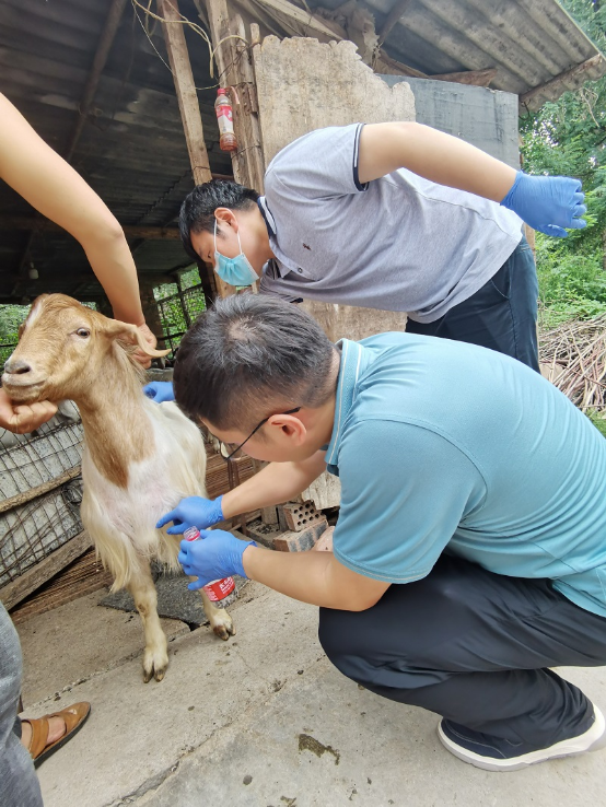 三人在汝州市畜牧局王帅涛的带领下来到小屯镇小屯村的一家山羊养殖户,开展山羊硬蜱防控技术指导。据畜主介绍硬蜱在当地非常普遍,尤其是今年特别多,时常可见山羊发生发热、贫血等症状,严重影响了山羊的健康成长。鉴于此,彭永帅老师结合自身专业特长,向畜主耐心介绍了硬蜱的生活习性,并给出了有效的防控措施和相应疾病的治疗方案。为了深入了解当地硬蜱携带病原体情况,老师们采集了硬蜱活体带回学校实验室进行进一步检查,以期帮助该地区开展更具针对性的蜱媒疾病防控。
