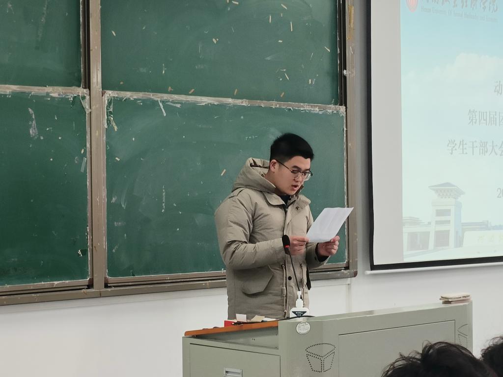 会议伊始,第三届团学组织主席团代表郭宠宠同学发言,他率先对学生会新成员的加入表示祝贺,并就自己在学生会任职期间的收获与感悟同全体成员分享。随后,第四届团学组织主席团代表张行健同学对我院上学期的学生会工作进行总结,并结合上学期的经验得失,对本学期的工作计划进行详细汇报,他表示会带领新一届团学组织在强化内部建设、加强作风建设、增强组织联系、丰富校园生活等各方面继续努力,进一步提升。