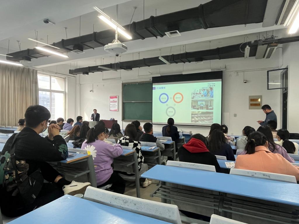 会上,天康生物河南宏展集团吴经理针对天康的企业业务板块以及本次招聘展开讲解。天康生物股份有限公司是上市国企,作为首批农业产业化国家重点龙头企业,已经形成了现代生猪科学育种与养殖—饲料与饲养管理—兽用生物制品及动物疫病防治—生猪屠宰加工配售等关键环节的产业基础,拥有河南省科技厅认定的“河南省配合饲料工程技术研究中心”,现有饲料生产基地6家年产量150万吨以上。在畜禽养殖方面,投资建立了信阳5000头丹系原种猪繁育基地及汝州、驻马店年出栏100万头商品猪繁育基地。会后,同学们针对企业待遇和工作调剂展开问询,在交流过程中有很多同学表示对天康生物河南宏展集团有意。