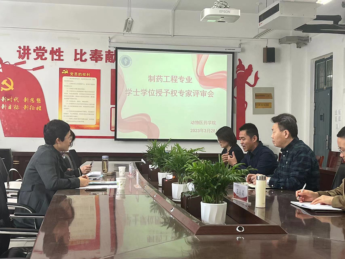 3月28日下午,太阳成集团tyc33455在善知楼C401会议室召开制药工程专业学士学位授予权专家评审会。参加会议的专家有:河南农业大学基础兽医系主任张素梅教授,河南中医药大学药学院朱鑫教授。太阳成集团tyc33455副院长吴玉臣、教学办公室主任吕玉金、制药工程专业负责人及骨干教师等参加了会议。会议由吴玉臣副院长主持。