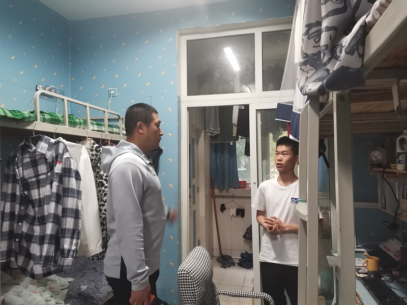 本次宿舍走访,了解了学生所思所盼所想,倾听学生心声、回应学生诉求体现了学院领导和辅导员对同学们浓厚的关心和爱护,学生们纷纷表示一定密切配合学院各项工作,并加强与辅导员、任课教师的沟通联系,为打造平安校园做出贡献。(赵旭文/图)