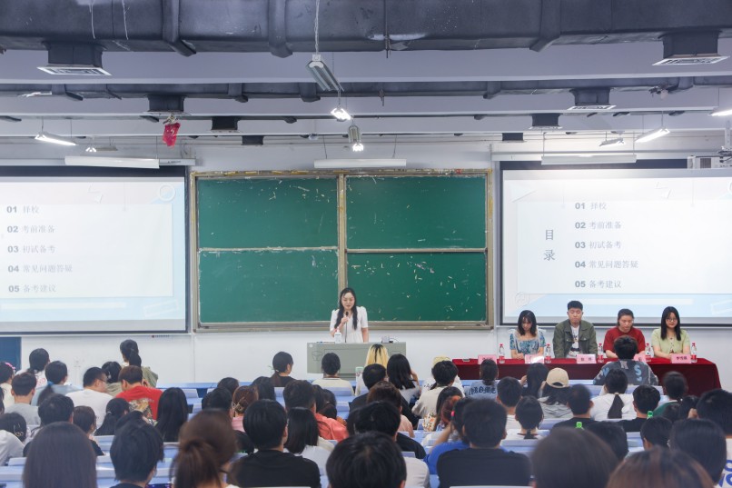 此次考研交流会,为有考研需求的同学们提供了平台,让同学们获悉了最新的考研情况,提高学习效率,明确了考研目标及复习方向,以积极乐观的心态迎接考研。(宋斐斐 图/文)
