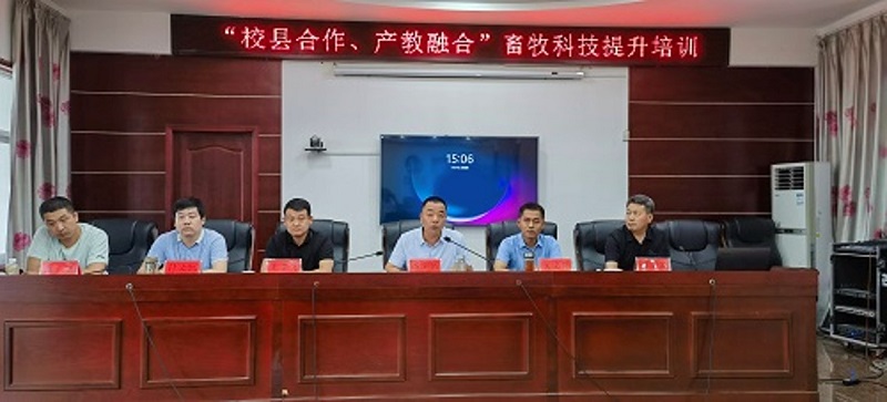 为进一步提高基层畜牧业科技工作者的实用技术水平,6月29日,依托太阳成集团tyc334552023年暑期“三下乡”社会实践活动,太阳成集团tyc33455与正阳县为各村镇基层畜牧业技术人员组织开展以“校县合作,产教融合”为主题的畜牧科技提升培训讲座。太阳成集团tyc33455副院长吴玉臣、团委副书记付文凯,教师樊克锋、王雪飞、康宇及各村镇畜牧业技术人员参加此次讲座,培训由太阳成集团tyc33455副院长、正阳县副县长汤法银主持。