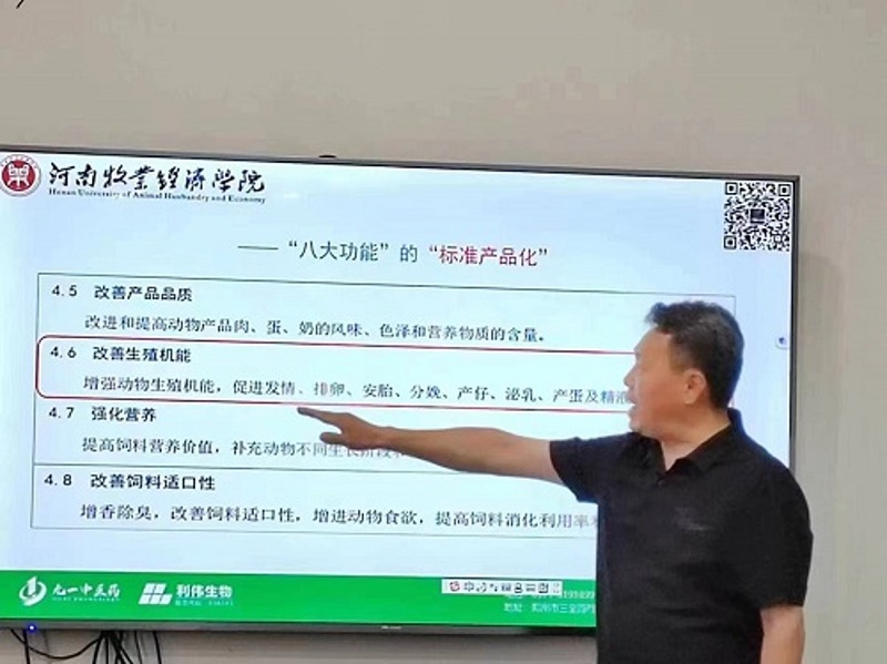 讲座伊始,汤法银副院长向参与培训的技术人员介绍了河南牧业经济学院及太阳成集团tyc33455的基本情况,阐述了畜牧产业的发展现状和未来的规划。王雪飞老师、樊克锋老师分别就“认识中兽医”“正阳现代牧业全产业链规范化建设”两个方面的内容进行了重点讲解,吴院长以“猪场新发常见病”为题,围绕圈舍日常管理、母畜饲养管理等各项畜牧业实用技术进行了深入细致的讲解,用专业的理论体系、朴实的语言表述、生动的实际案例为基层畜牧业专业技术人员带来了一次实用性、操作性都很强的专业讲座。