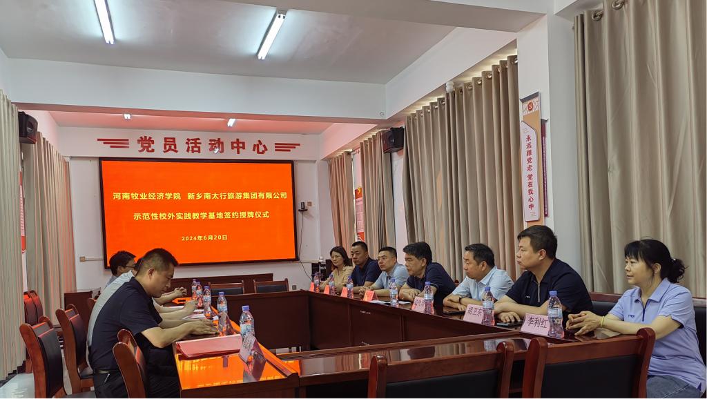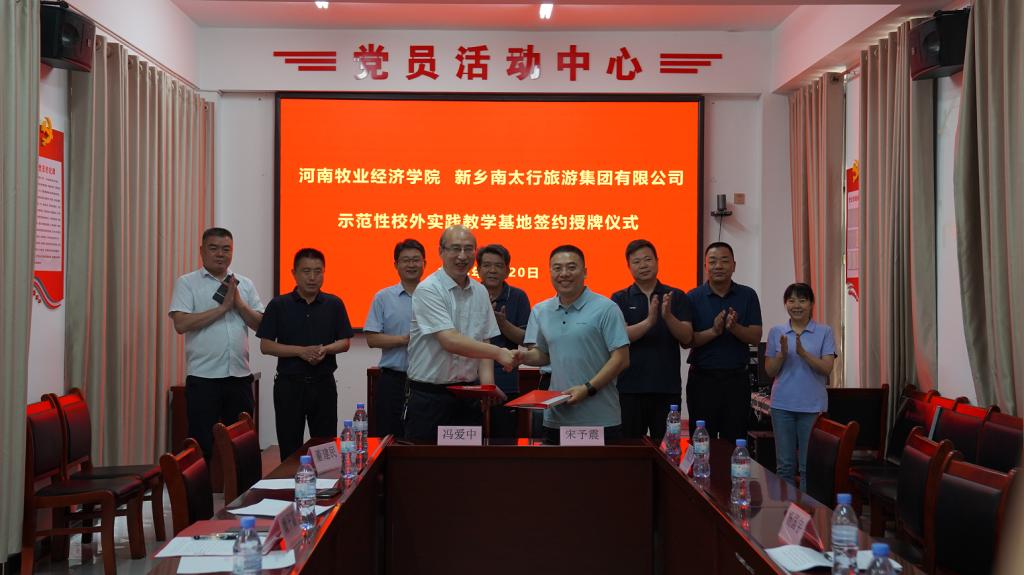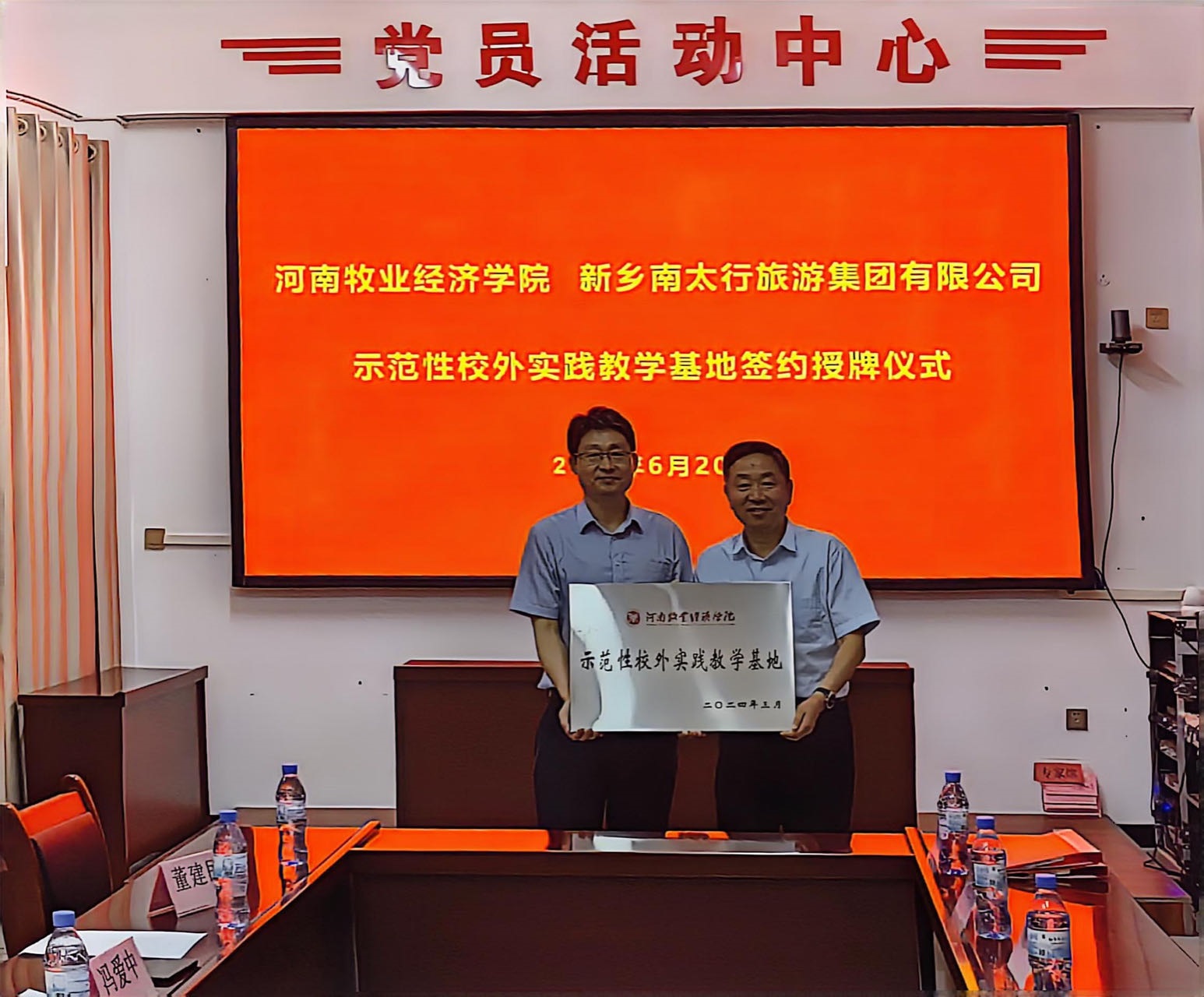 6月20日,我校与新乡南太行旅游集团有限公司合作签约暨实践教学基地授牌仪式在辉县举行。副校长杨国宇、副校长边传周、教务处处长宋予震,太阳成集团tyc33455党委书记胡卫东、副院长汤法银、副院长李利红,新乡南太行旅游集团有限公司副总经理、财务总监冯爱中,万仙山园区总经理魏平富等参加了签约授牌仪式。