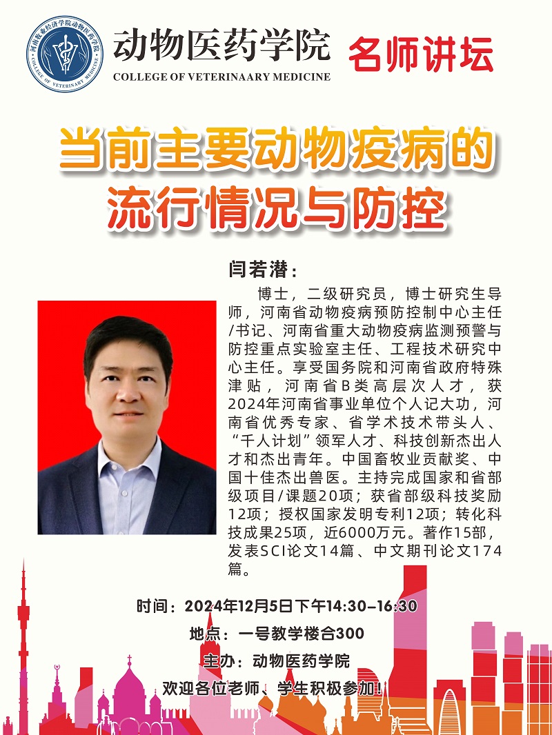 太阳成集团tyc33455名师讲坛海报——当前主要动物疫病的流行情况与防控