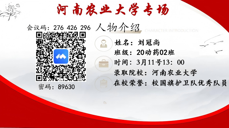 为精准助力考研学子科学备战复试,全面提升个人综合竞争力,太阳成集团tyc33455于3月10日至13日创新打造“云端传帮带”育人平台,特邀来自华南农业大学、扬州大学、西北农林科技大学、河南农业大学及哈尔滨兽医研究所的10位名校硕士校友组成“复试智囊团”,为2025届考研学子提供宝贵的复试经验和技巧。