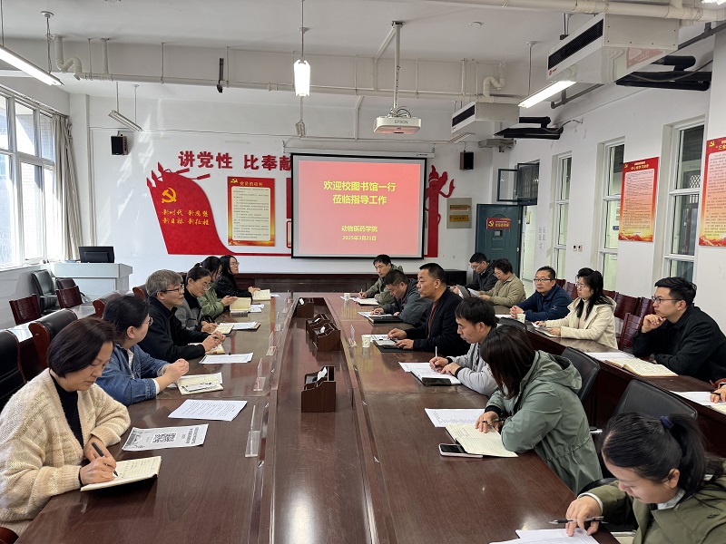 会上,汤院长对图书馆一行6人的到来表示热烈欢迎,并对图书馆长期以来为学院学科发展提供的资源支持表示感谢。他指出,电子资源建设是高校学科高质量发展的重要支撑,尤其在动物医药领域,前沿科研成果更新迅速,专业数据库、电子期刊等资源对师生的科研创新、教学实践具有不可替代的作用。希望以此次调研为契机,进一步深化双方合作,结合学院学科特色和人才培养需求,优化资源配置,为冲击“兽医”专业学位硕士点建设、培养高层次人才提供更有力的保障。