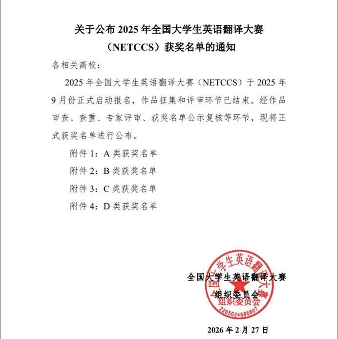 我院一直高度重视学生综合素质的培养,积极鼓励和支持学生参与各类学科竞赛,以赛促学、以赛促教。此次获奖不仅是对我院学子专业能力和英语水平的肯定,也是学院教学成果的一次良好展示。学院将继续支持学生参与高水平竞赛,培养更多具有国际视野和专业素养的优秀人才。(马博 文/图)